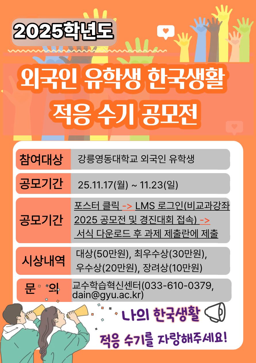 2025학년도 외국인 유학생 한국생활 적응 수기 공모전